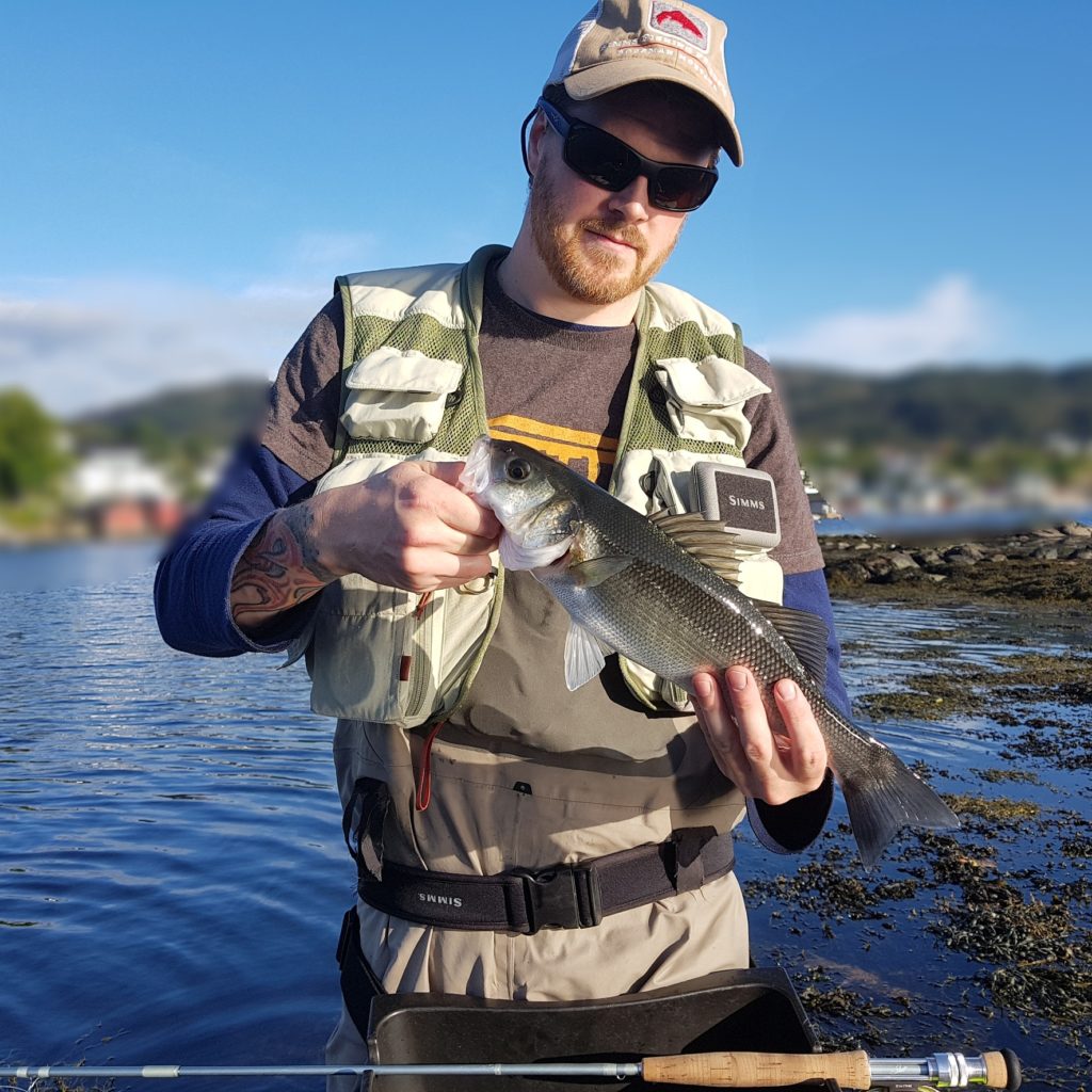 Men det var ikke mer å få etter det. Vi hadde brukt bellybåt ut på en liten øy som vi lenge har villet fiske fra, her kunne vi fiske 360 grader rundt oss. Den neste timen var det smålyr og makrell som tok flua. Vi så noen mindre sjøørret hoppende. Kast på disse ga ingenting.