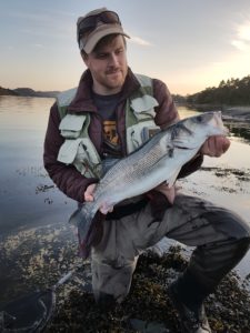 Så ser kompisen min en vannmasse som flyttes ca 50-60 meter ute. Han hyler at det var garantert en havabbor på minst 4kilo! Han så ryggen og vannmassene som ble flyttet på. Denne var forsåvidt utenfor kastelengde men få oss et lite ekstra håp om mer havabbor denne kvelden. De var der enda!
