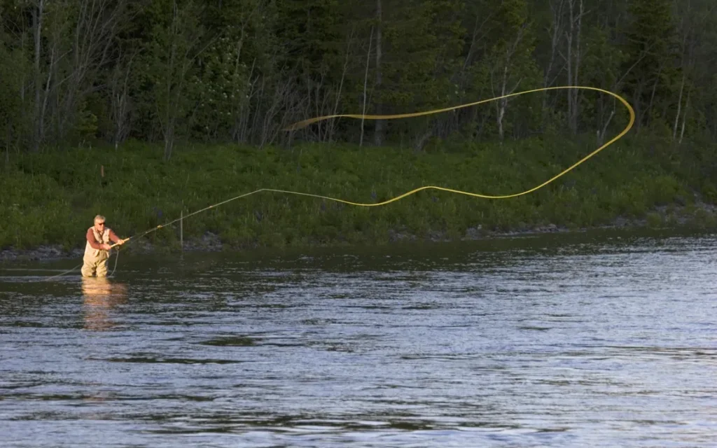16 av de 33 elvene Miljødirektoratet stengte for laksefiske fra Trøndelag og sørover 23. juni, åpner fra midnatt natt til torsdag 11. juli for et svært begrenset fiske under strenge betingelser. Bildet viser en laksefisker som kaster med flue i Verdalselva (arkivfoto). |Foto: Kim Abel/Naturarkivet.