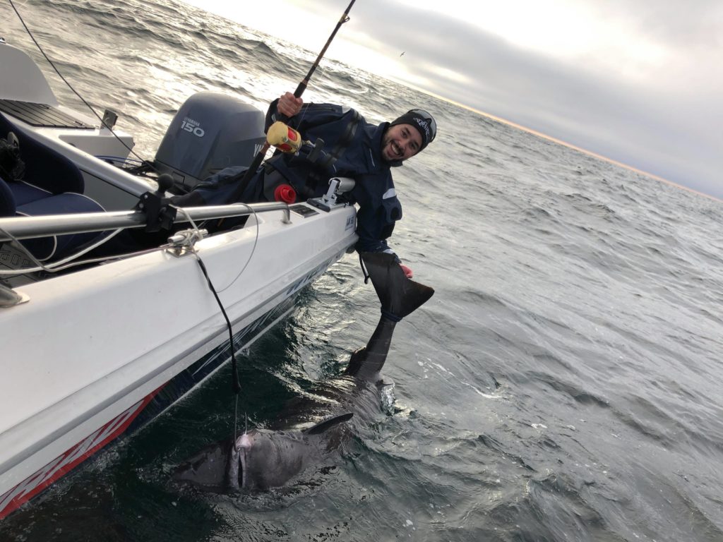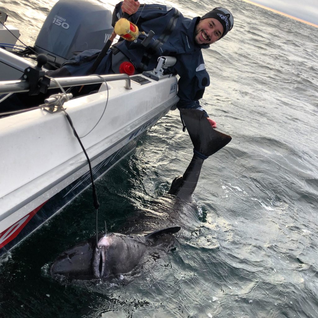 De to har vært i kontakt med Havforskningsinsituttet og samlet inn enkle data til deres arbeid. Fisken målte 180 cm og 100 rundt buken. Det er hunnfisk, som fikk svømme videre etter at den var dokumentert både for forskningen og fotoalbumet.