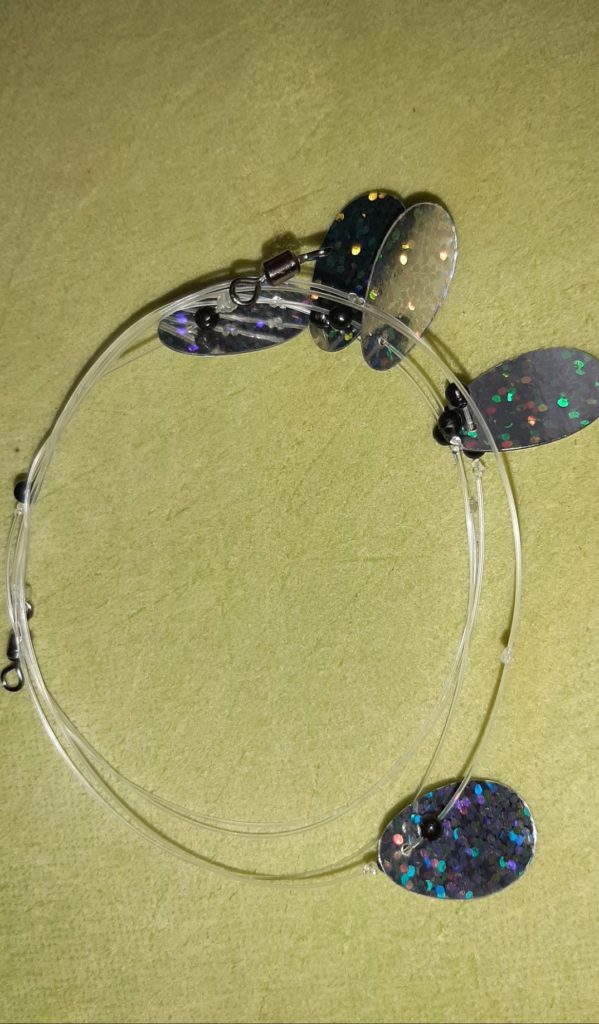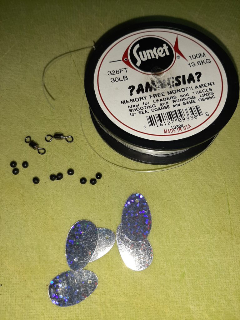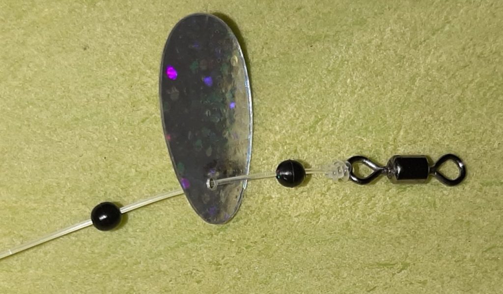 Du har nå laget et ca. 1,5m langt markdrag med 5 spinnerblader. Den ene svivelen knytes fast i sena fra stanga, og den andre kobles til en synkende Bombardadupp. Bak Bombardaduppen knyter jeg på en fortom av 0.20mm fluorkarbon med en passende krok. Agnet kan være alt mulig. I ferksvann er meitemark, maggot og Attraqua uslåeligeagn, mens jeg tilogmed har prøvd dette på sandstrendene med tobis og Attraqua og fått piggvar og skrubbe!