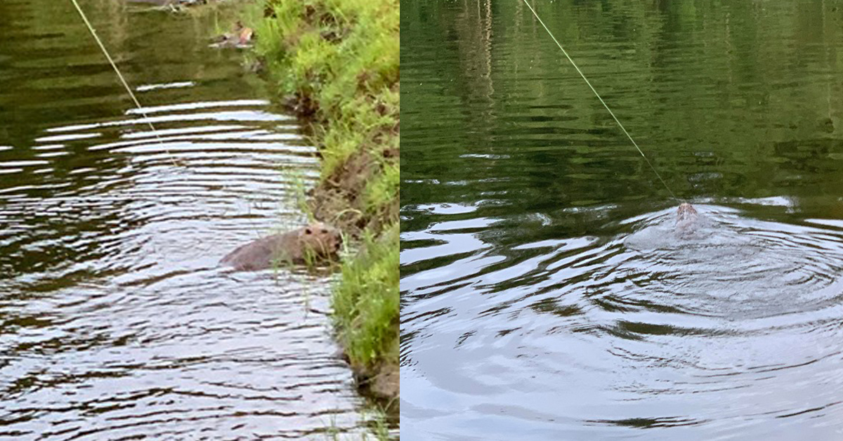 Da svømmer en lykkelig bever ned i vannet, fiskeren står tilbake med en tubeflue med skikkelig lukt av bever.