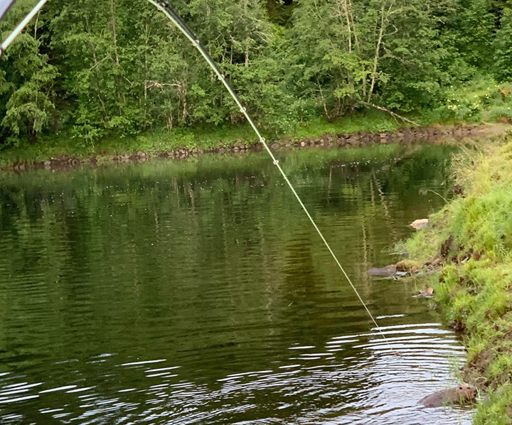 Fiskeren hadde i dag bestemt seg for å fiske med litt lettere utstyr etter laksen, derfor hadde han tatt frem sin fluestang i klasse 7/8 med en tubeflue i enden.