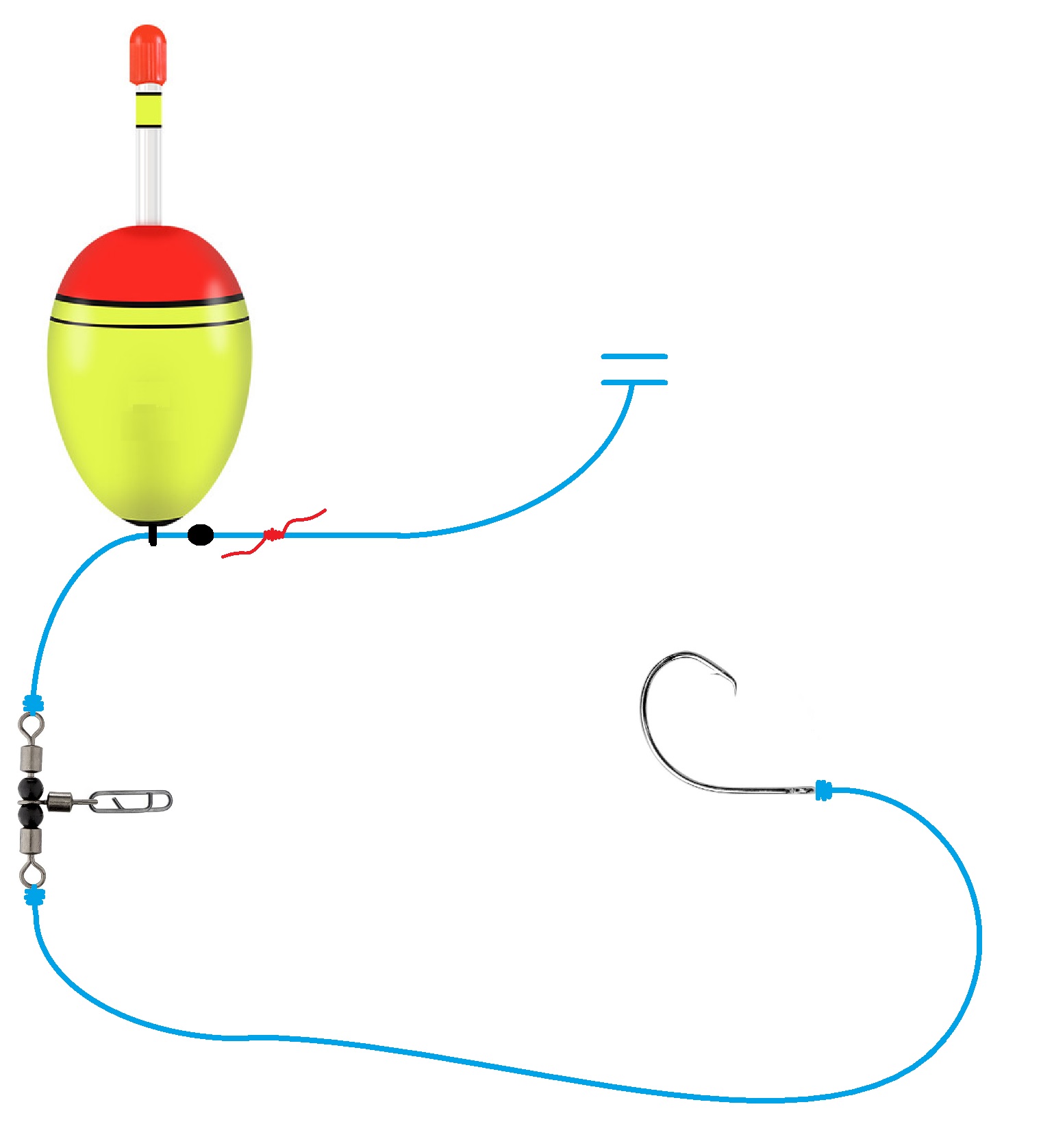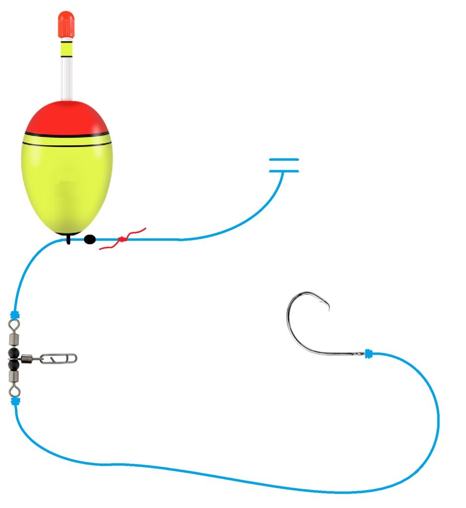 Jeg prøver å holde det enkelt i tillegg til fleksibelt, og bruker en glidedupp med stor bæreevne. Dette gjør at jeg kan variere dybden jeg fisker på med en rask håndvendig, samtidig som den store duppen holder en del vekt. Dette sikrer kastelengde, og stabilitet i strøm eller bevegelig vann.