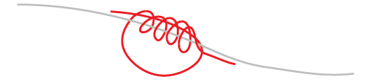 Duppen justeres opp og ned på sena ved hjelp av en duppstopper laget av Powergum (til høyre for duppen i diagrammet). Dette er en gummilignende tråd som knytes rundt hovedsena fra snella. I bildeserien nedenfor ser du hvordan denne knuten lages.