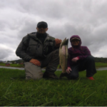 Jeg fortsatte å kaste og flyttet meg utover. Byttet fluer. Så en og annen fisk hoppe, men ingen ville ha godsakene jeg serverte. Mange kast og ett hogg senere dukket Torgeir opp. Han hadde med seg prototypen på #6 av den nye stangserien til Streamstix: Oceanbourne.