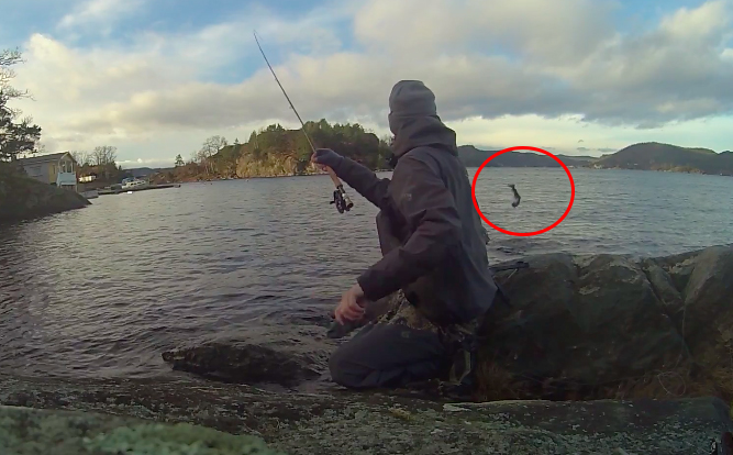 En stund etter at familien hadde lagt seg ombord i båten og Kent tenkte seg hjemover, så begynte snella å hylle og ga et utras på 300 fot før han rakk å ta stanga.