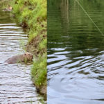 Neste dag fikk jeg en på 5.1 og 0.8 på samme type fiske. Den minste på flue. 5-kilosen var en rømt oppdrettslaks, som bet på samme wobbler som sist. Da vi kom til tunet gikk guiden gjennom kjennetegn for å skille oppdrett fra villaks. Ny læring.