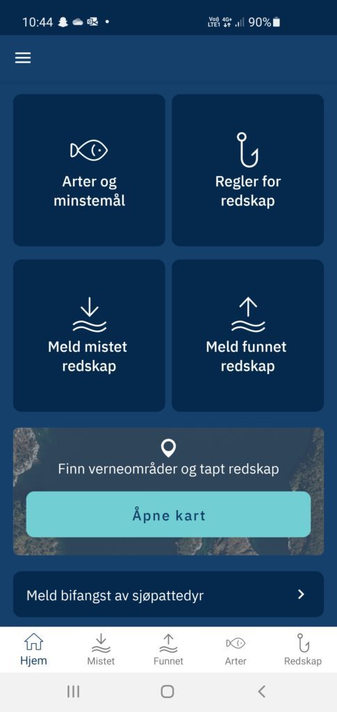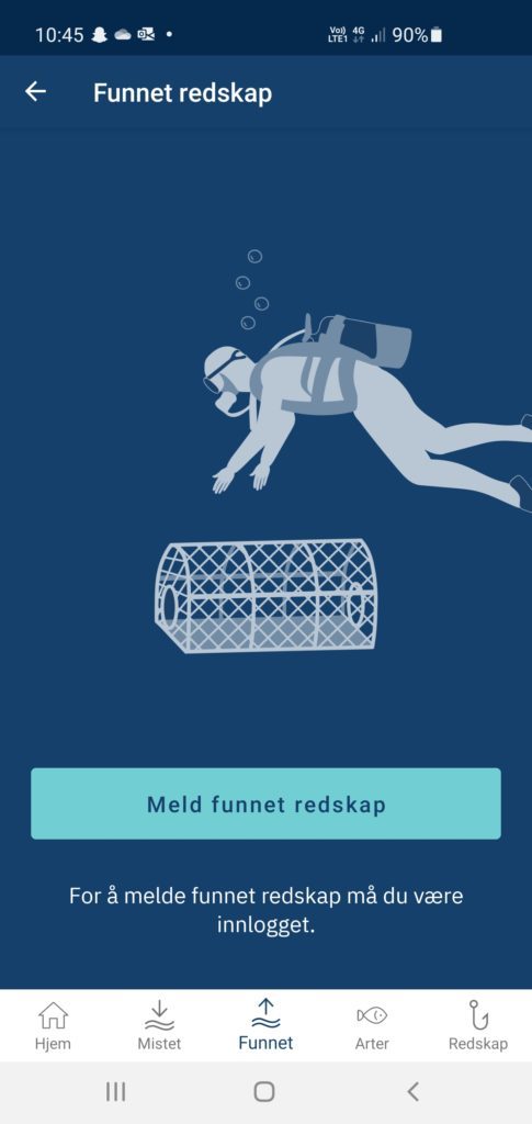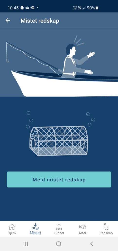 Er du ute på sjøen og finner redskap som er forlatt, eller redskap som du selv mister, kan du ved hjelp av denne appen melde fra om dette, slik at det blir tatt hånd om. Denne funksjonen er ikke lenger tilgjengelig i den gamle appen.