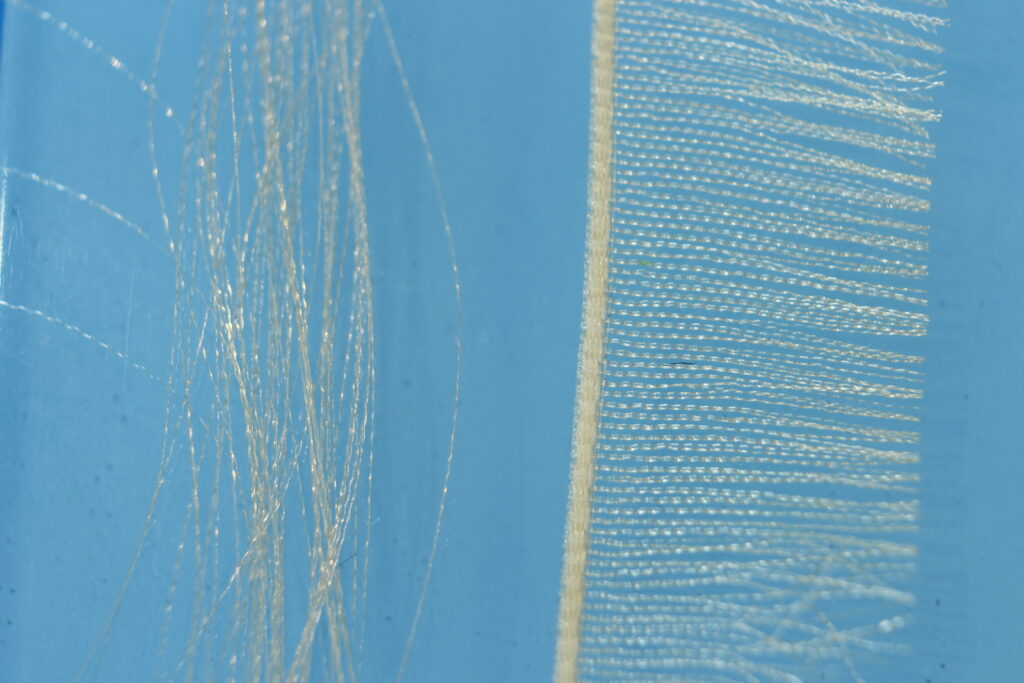 Ta en remse med Organza Ribbon og del den diagonalt slik at du får et tapert hackle.