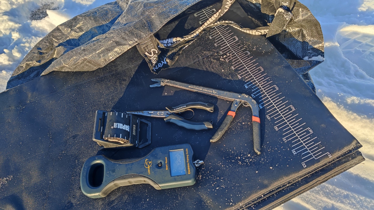Foruten disse spesialverktøyene som kun er aktuelle ved isfiske finnes det flere aktuelle hjelpemidler som vi synes er viktige å ha med seg. Særlig mtp gjenutsetting av de store eksemplarene. En landingsmatte eller sitteunderlag og en lang tang er svært viktig å ha med seg for god håndtering av fisken.