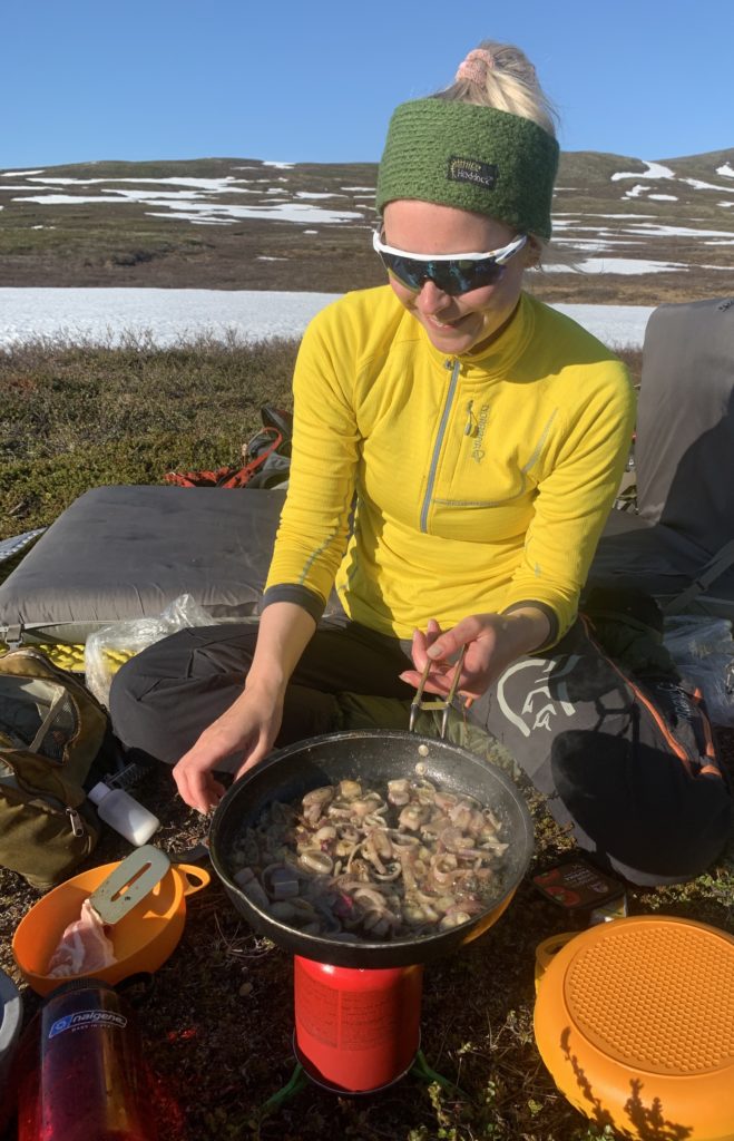 De to turvenninnene lager middag til solnedgang i nasjonalparken i Indre Troms denne kvelden.