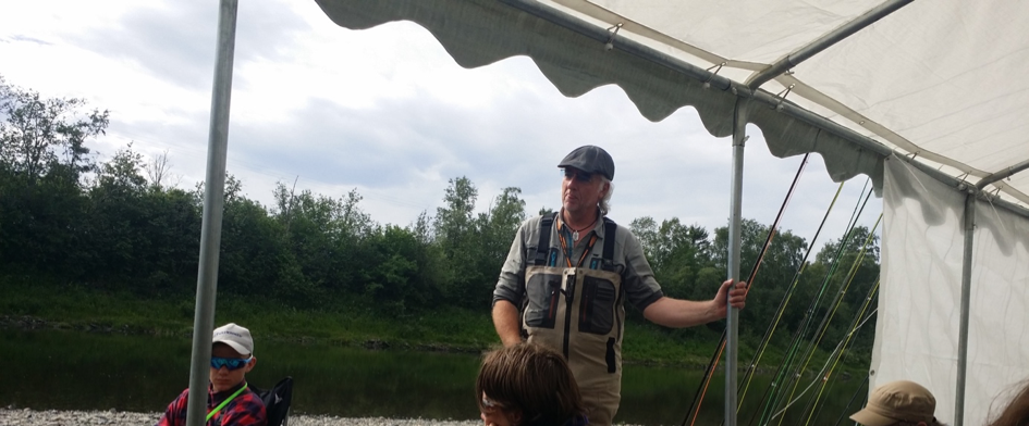 Lørdags morgen møtte deltakerne en blidspent Jan Erik Granbo, instruktør og ambassadør fra Guideline (Se også Granbo Flyfishing). Jan Erik benyttet formiddagen til demonstrasjoner i elvevannet med en- og tohånds- fluestenger. Videre fikk ungdommene jobbe på egenhånd med individuell veiledning.