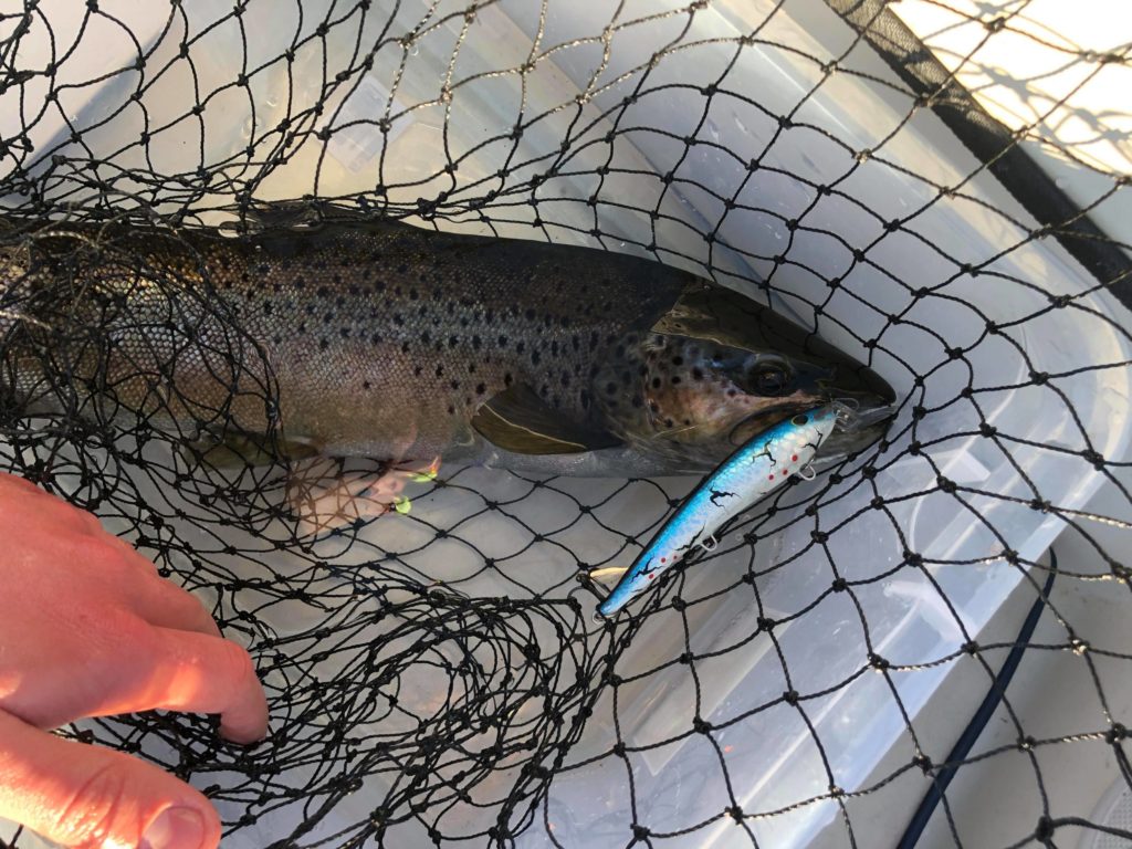 Det endte med en ørret til på denne turen. Den veide 1,2kg. Fiskeren kan også røpe at alle fiskene tok på samme wobbler, fra hallingwobbleren.