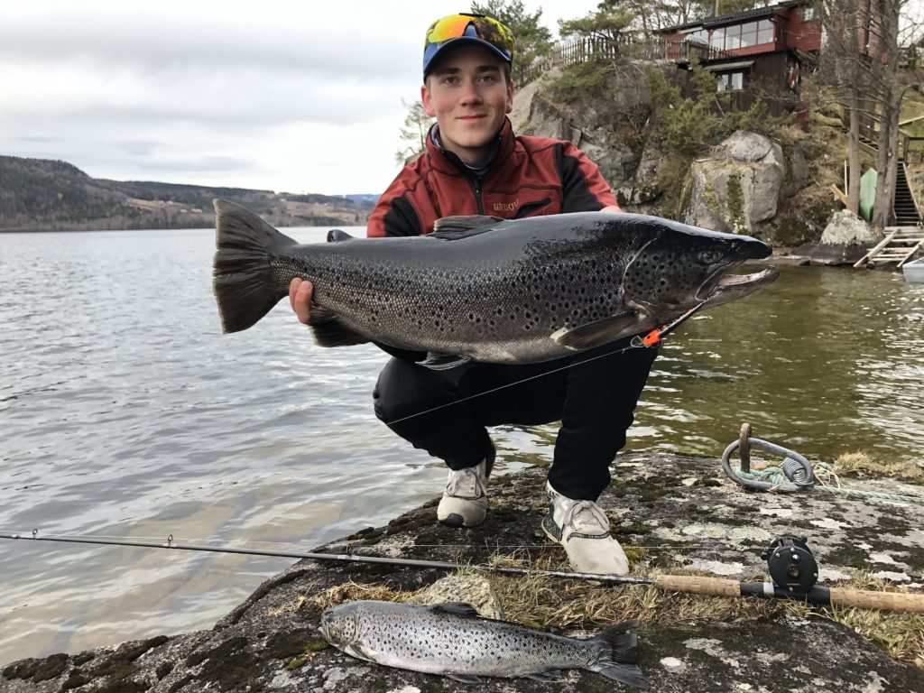 – Det ble en seig fight med snører som koblet seg i hverandre. Til slutt tapte en ørret på 3,85kg kampen, jeg var storfornøyd ettersom dette var ny pers og den var 600g større en den første jeg fikk i fjor.