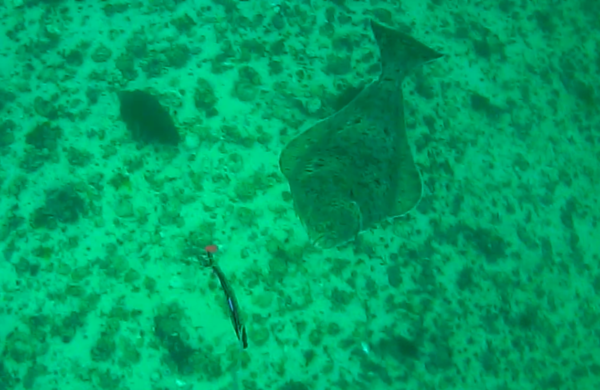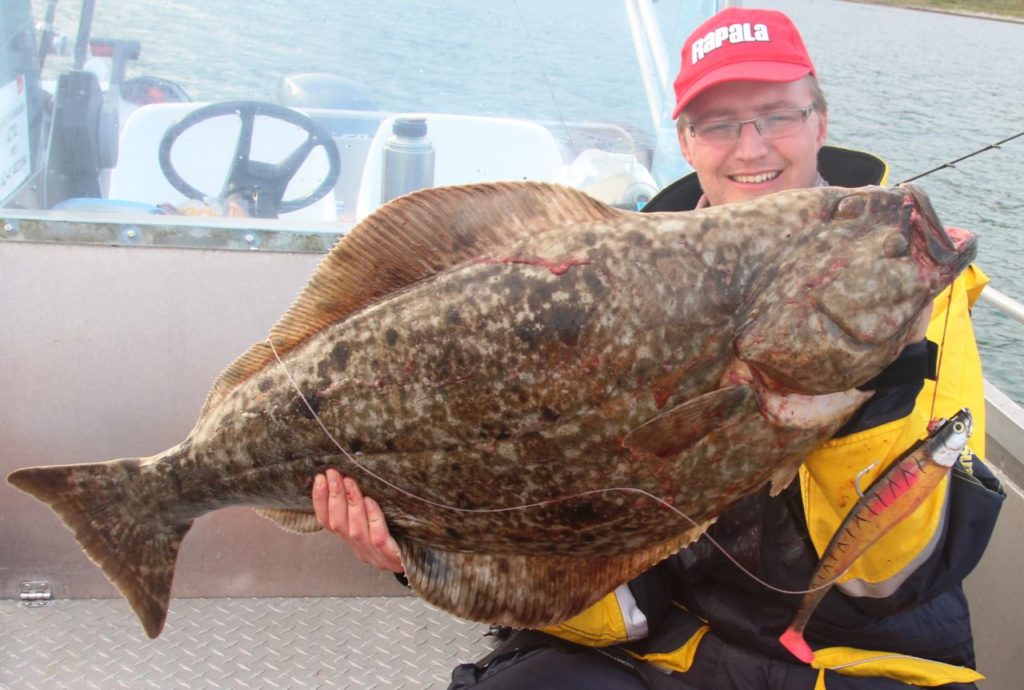 Noen minutter inn i driftet utbrøt Tor: «der er det en kveite!». Og ganske riktig. En kveite av grei størrelse snudde seg etter jiggen som passerte den, fulgte den et stykke, men forsvant raskt ut av syne.