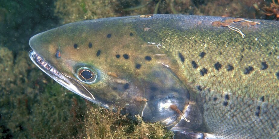 En voksen laks med flere lakselus. De lange «trådene» på lusene er eggstrenger. Fotograf: Erling Svensen / Havforskningsinstituttet Nye resultat viser at laks som har … Fortsett å lese Laks med lus bruker mer energi