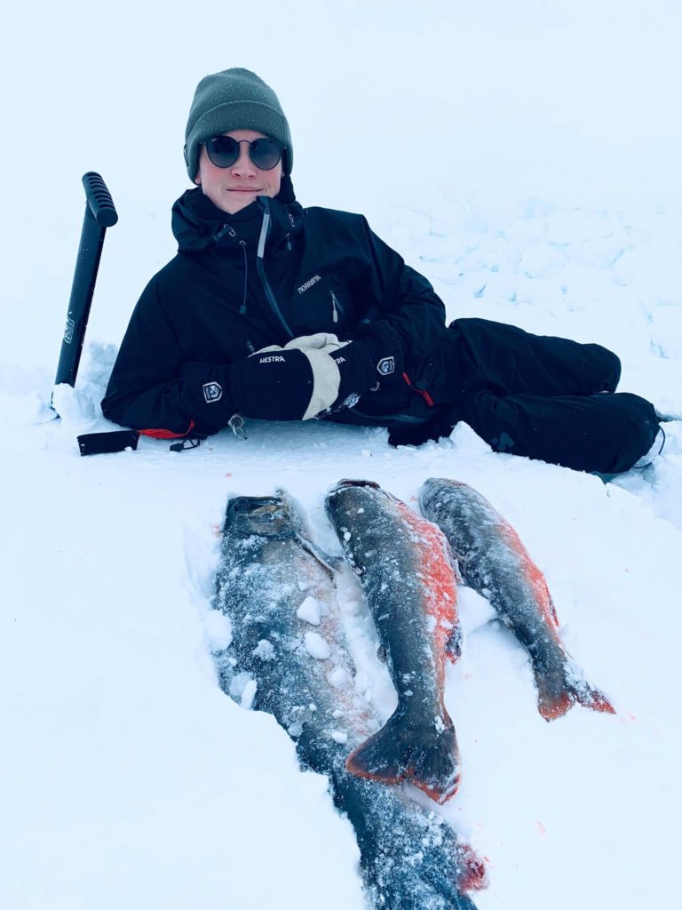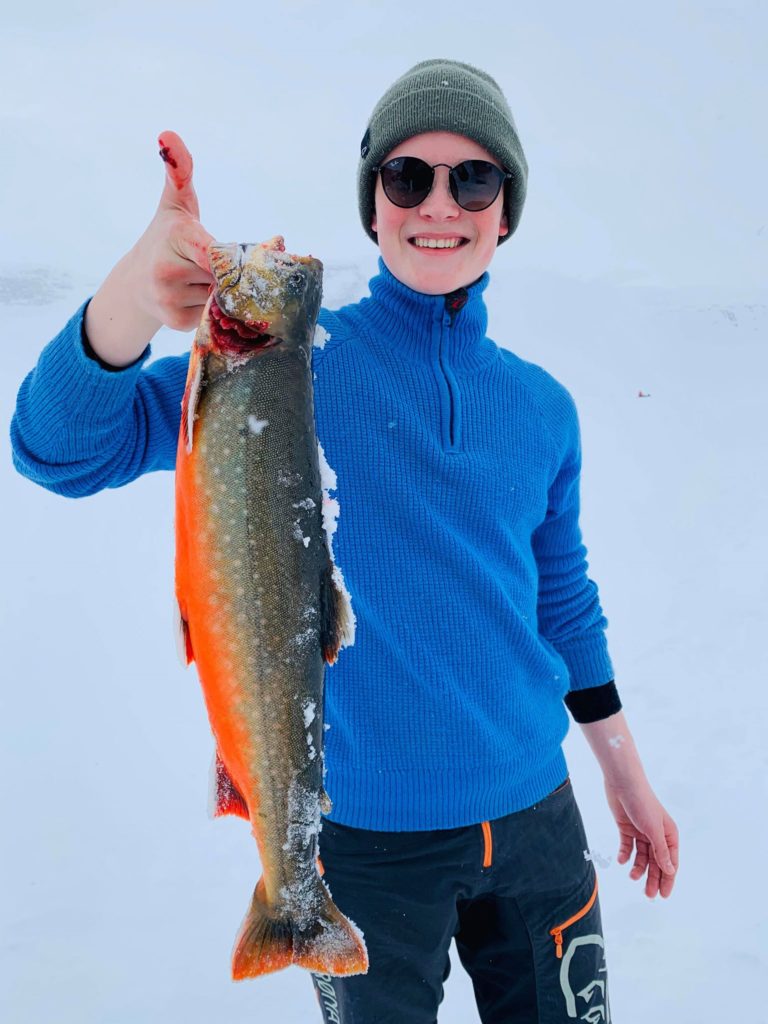 – Det var jo utrolig gøy. Vi har jo lenge snakket om å ta han med på tur for å prøve å vekke fiske og friluftsintenteressen hos han. Vi har jo fisket aktivt selv i mange år, og vet at det kan kreve mye tålmodighet for å få de skikkelig store opplevelsene. Hadde virkelig håpet at han skulle få en en god start, men at det skulle bli så bra som det ble hadde vel ingen trodd. Og kontrasten ble jo veldig stor når vi bare fikk smått og han dro opp 3 flotte røyer. Man må jo innrømme at man blir litt frustrert når han på første tur slår begge vår pers på isen, men samtidig er det bare å glede seg over opplevelsen og at vi fikk ta del i det. Så blir det nok flere turer der vi får ta opp kampen, forteller storesøster til Fiskeavisen.