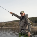 – Vi dro utpå vannet i 12 tida med et mål om 8+ fisk ila dagen. Etter et par timers fiske og bare noen små i båten, satte jeg på en dextershad (Red. Anm: En gummi jigg) på 25cm som jeg hadde trua på, og la kastet over en plass jeg nettopp hadde fått en liten en.