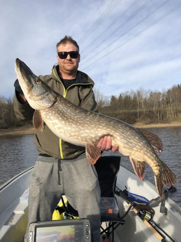 Stian forteller at de hadde et fantastisk fiske denne dagen. Totalt 13 gjedder, de fleste over 5 kg. Alle ble tatt på Westin jätte 23 cm.