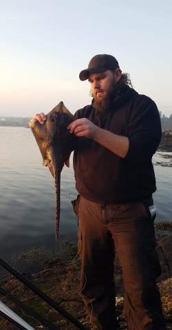 Det tar litt tid før jeg er i borti fisk, men at Ronny har ei sandflyndre og ei piggskate på land, blir jeg ikke nevneverdig stressa av. Det går en stund før jeg kroker min første fisk for dagen, også dette ei piggskate.