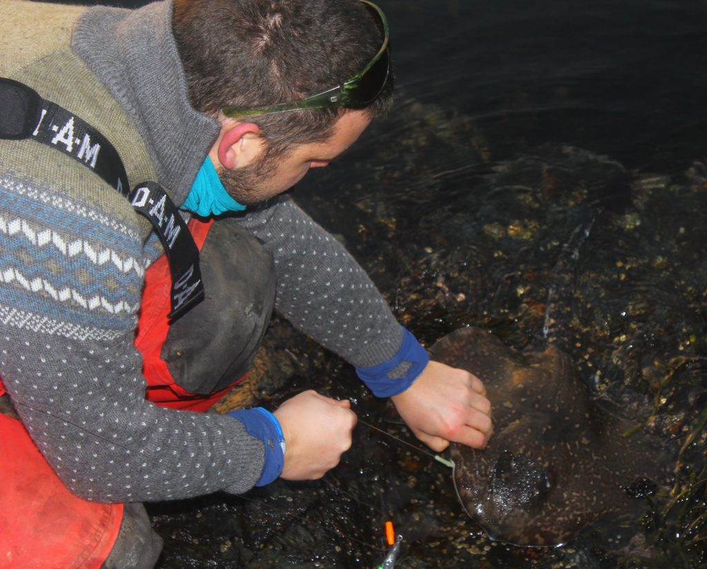 Ronny får ei skate til, før jeg kan melde om ei sandflyndre på flyndrestanga mi, som fisker tackelet sitt rett utenfor tangbeltet.