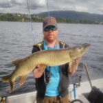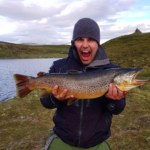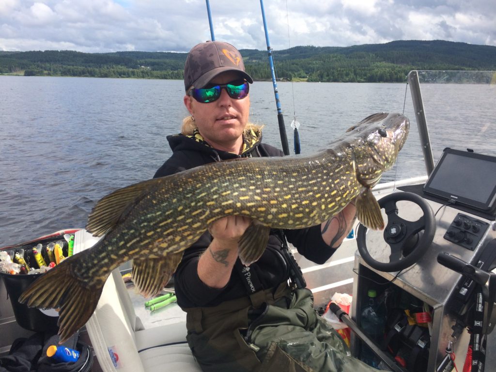 Et av vannene trodde vi var nesten tomt for fisk, selv med mye action på ekkoloddet. Kompisen Kristoffer smakte på vannet for sikkerhet skyld for å forsikre seg om at det ikke var salt, men heldigvis så lyktes vi i dette vannet også. Jeg fikk en på 99cm og 6+ kg, og kompisen Kristoffer en på 8 + kg (litt over meteren). Det var de eneste gjeddene som kom opp der. Så vil tro gjeddene som lever der er store men skye.