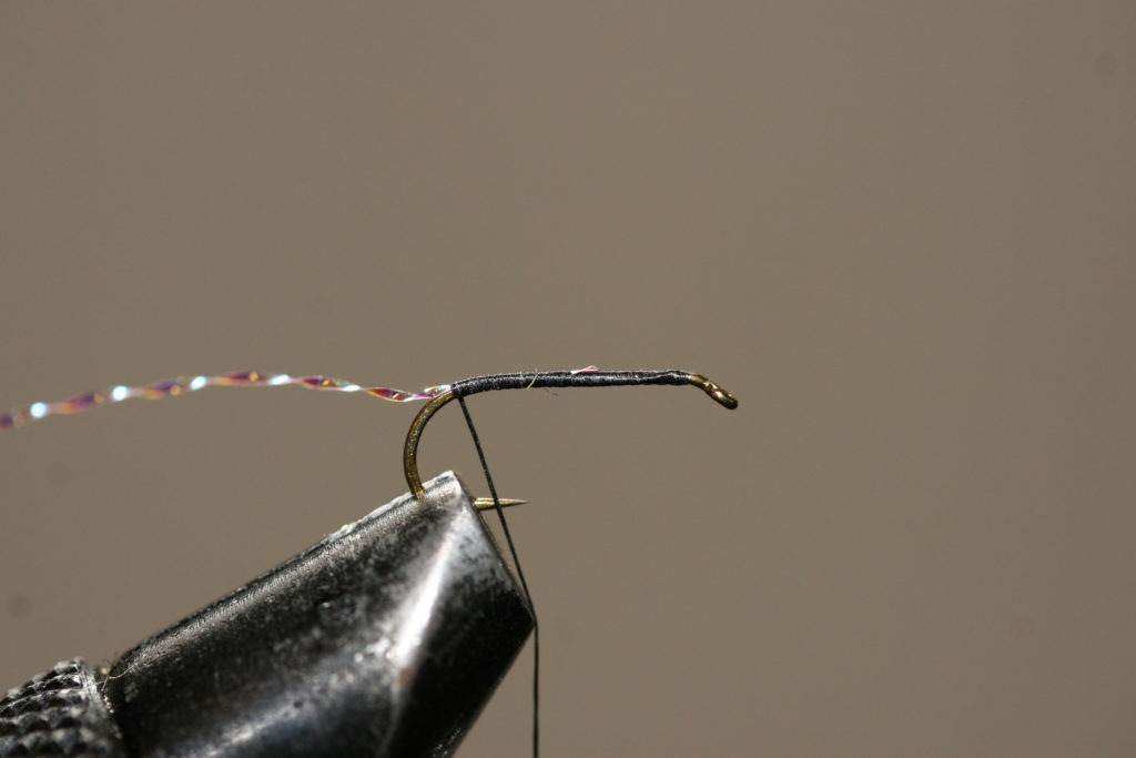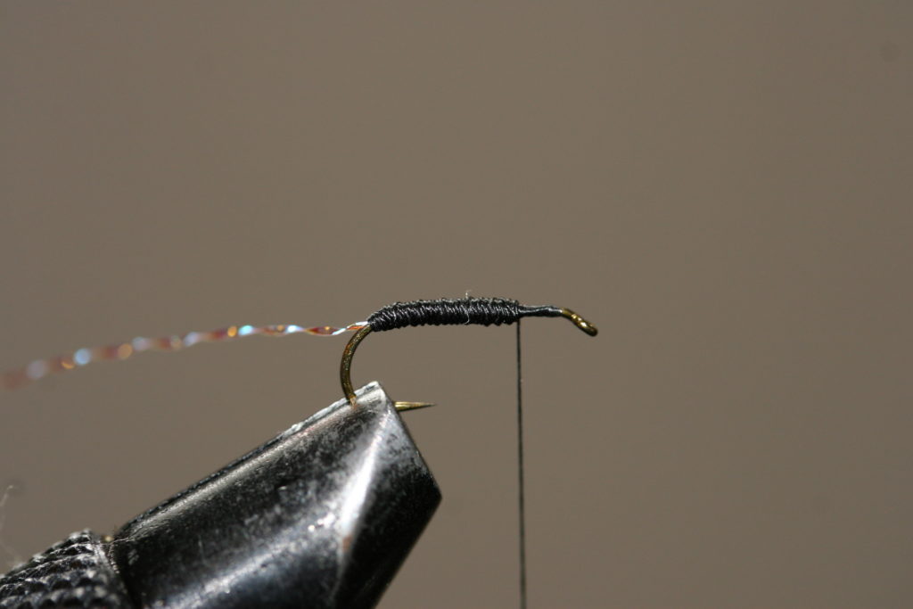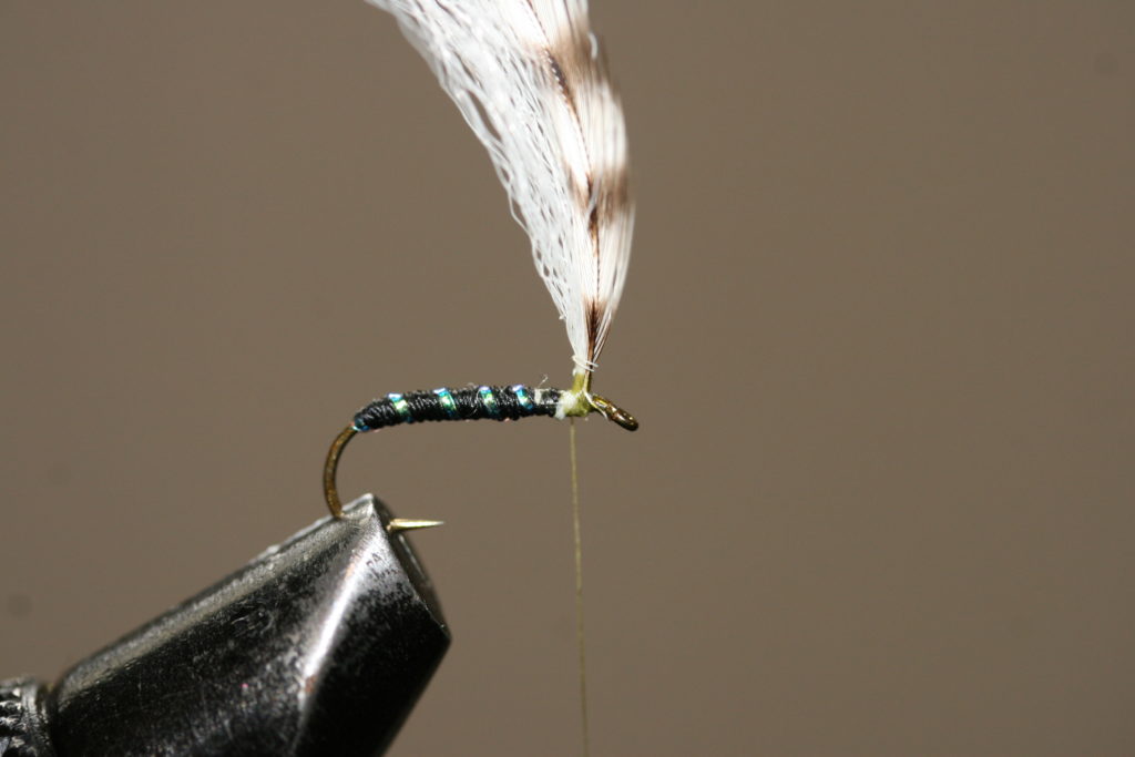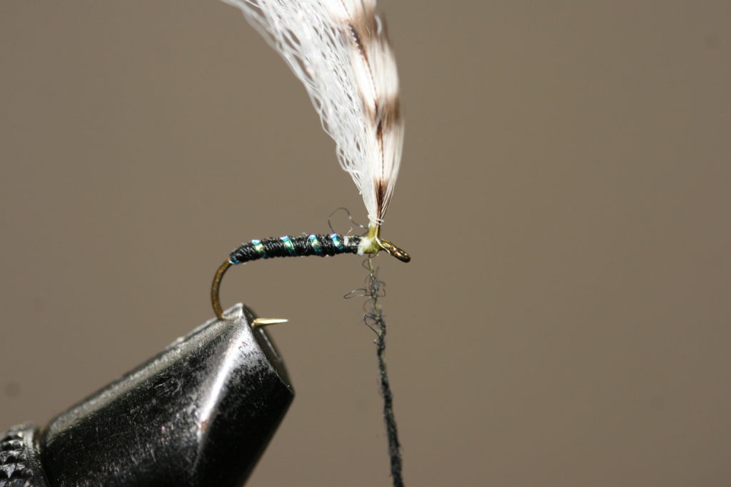 Fallskjermmygg 5) Fest flashtinselstrået med noen tighte turn med bindetråden, whip finish og kutt tråden.