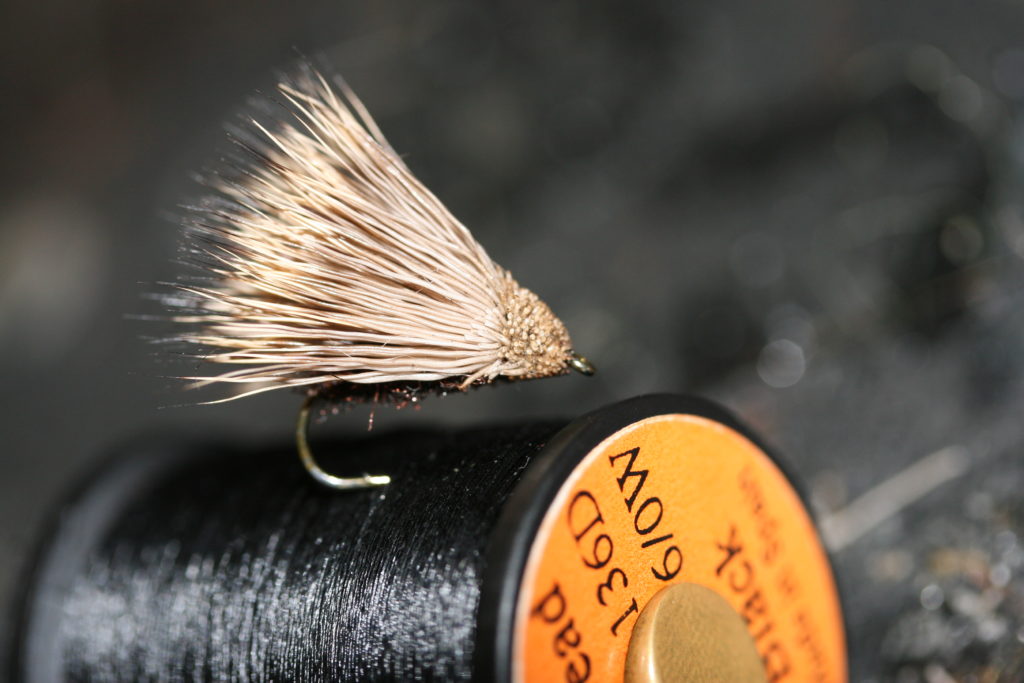 Streaking Caddis er like enkel å binde som de forrige fluene i Ørretboksen, og består av kun to materialer (foruten krok og bindetråd) – hjortehår og dubbing. Jeg foretrekker litt tykk bindetråd til denne flua, da en tynnere tråd ofte vil kutte hjortehårene og er ofte ikke sterk nok heller.