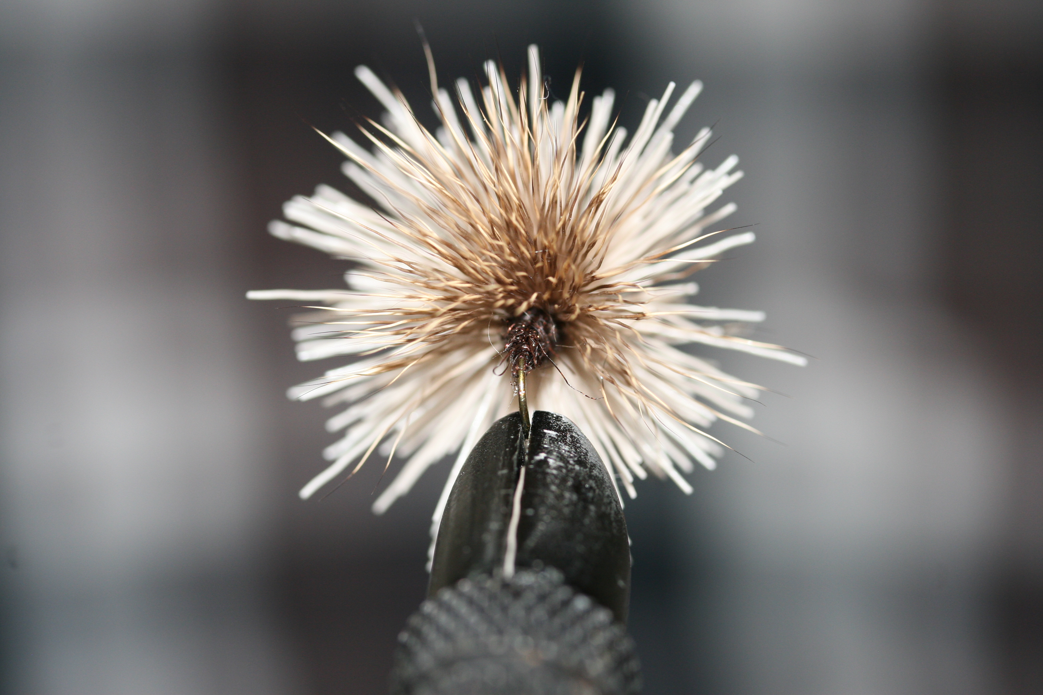 Streaking Caddis 8) Legg flere tighte tørn med bindetråden fremover i hårbunten, og avslutt rett bak krokøyet. Whip finish og kutt tråden.