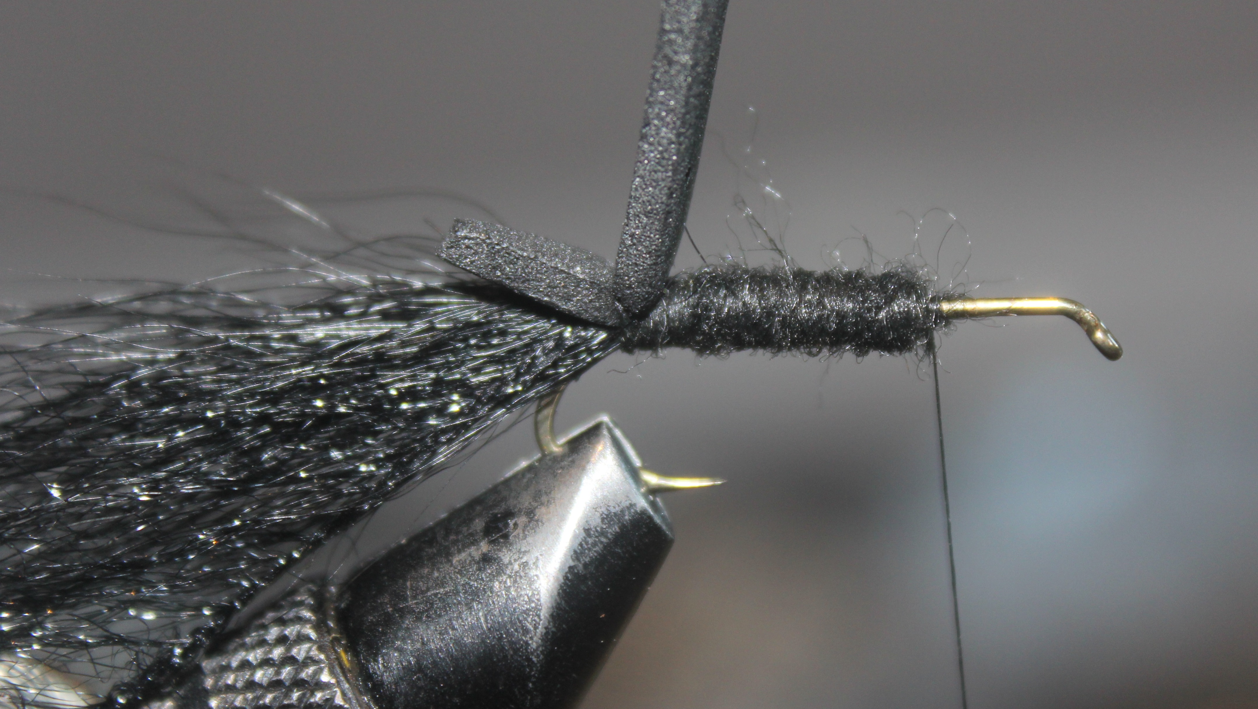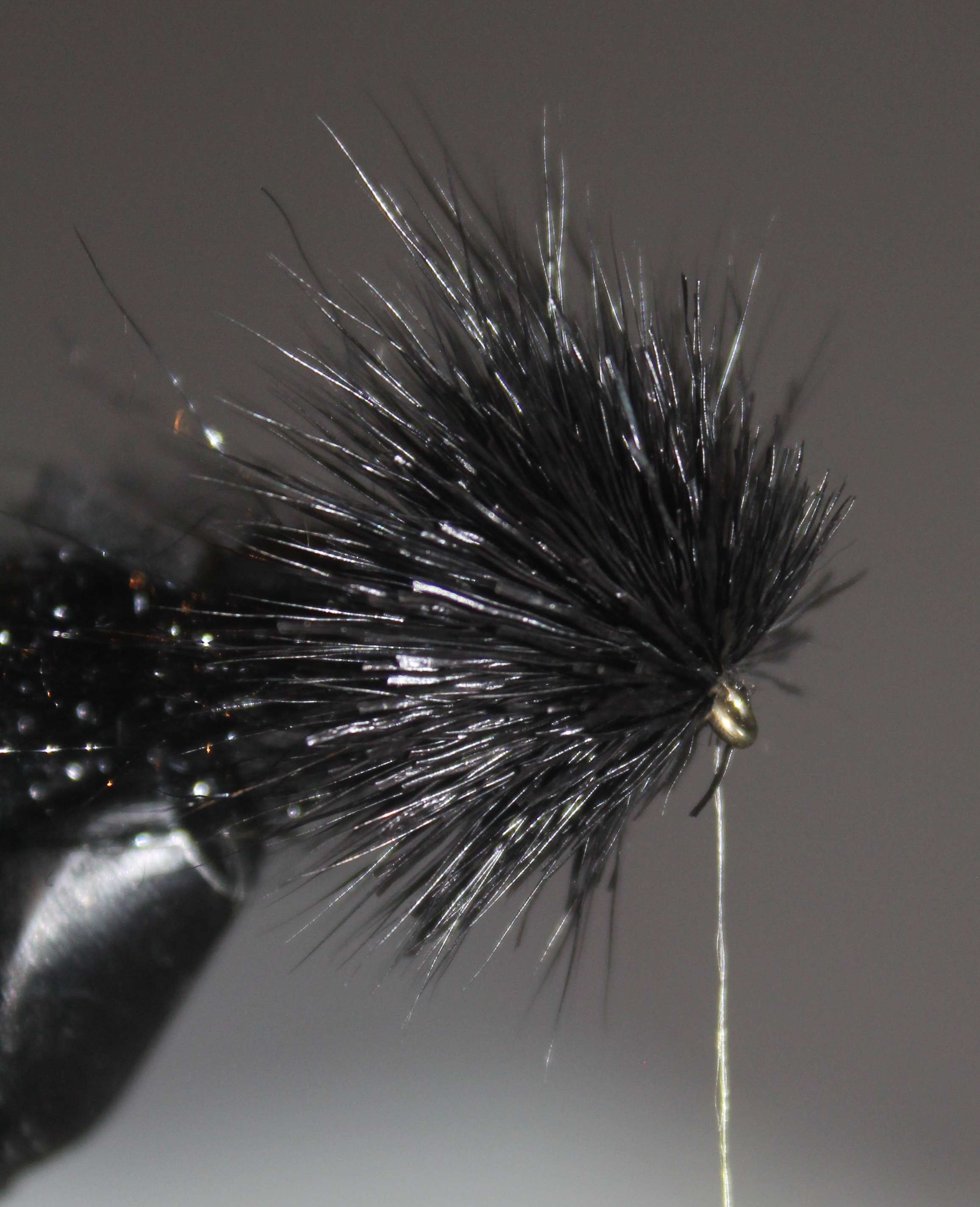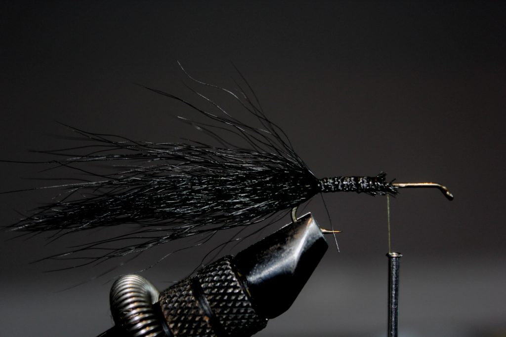 Svartedævven 1) – Jeg liker å bruke to ulike bindetråder. Foto: Lasse BøeSvartedævven 2) Jeg foretrekker en hale av bucktail , og er stivt i forhold til f.eks. marabou. Foto: Lasse BøeSvartedævven 3) – Ribbingmaterialet. Litt usikker på hvor denne er fra, men grov dubbing som børstes ut gjør samme nytten. Foto: Lasse BøeSvartedævven 4) Start med en sterk bindetråd. Jeg foretrekker Semperfli Nanosilk 18/0. Fest tråden og bind inn bucktailhalen. Foto: Lasse BøeSvartedævven 5) Bytt til en tykkere bindetråd, feks. UNI 6/0. Fest inn ribbingsmaterialet, og bind inn en tapert strimmel av foam. Begynn å dubb en tykk kropp med svart dubbing. Foto: Lasse BøeSvartedævven 6) – Dubb en tykk (og gjerne tapert) kropp. Foto: Lasse BøeSvartedævven 7) – Vikle ribbingmateriale i tette turn fremover mot krokøyet, og fest godt med bindetråden. Bruk en tannbørste til å børste fibrene ut til sidene. Foto: Lasse BøeSvartedævven 8) – Brett foamstrimmelen over ryggen på flua, og fest den med stramme turn. Foto: Lasse BøeSvartedævven 9) – Slik skal det se ut når ryggskjoldet er på plass. Foto: Lasse BøeSvartedævven 10) Foran avslutningen på foamen, fest inn hjortehår og spinn rundt krokskaftet. Foto: Lasse BøeSvartedævven 11) – En ny bunt med hjortehår bindes inn. Foto: Lasse BøeSvartedævven 12) – … og den tredje og siste bunten med hjortehår er på plass. Avslutt med whip finish. Foto: Lasse BøeSvartedævven 13) Jeg liker skikkelig rufsete hoder på Svartedævven, og kun grovklipper hjortehårene i en tapert form. Her er flua sett underfra. Foto: Lasse BøeFoto: Lasse Bøe