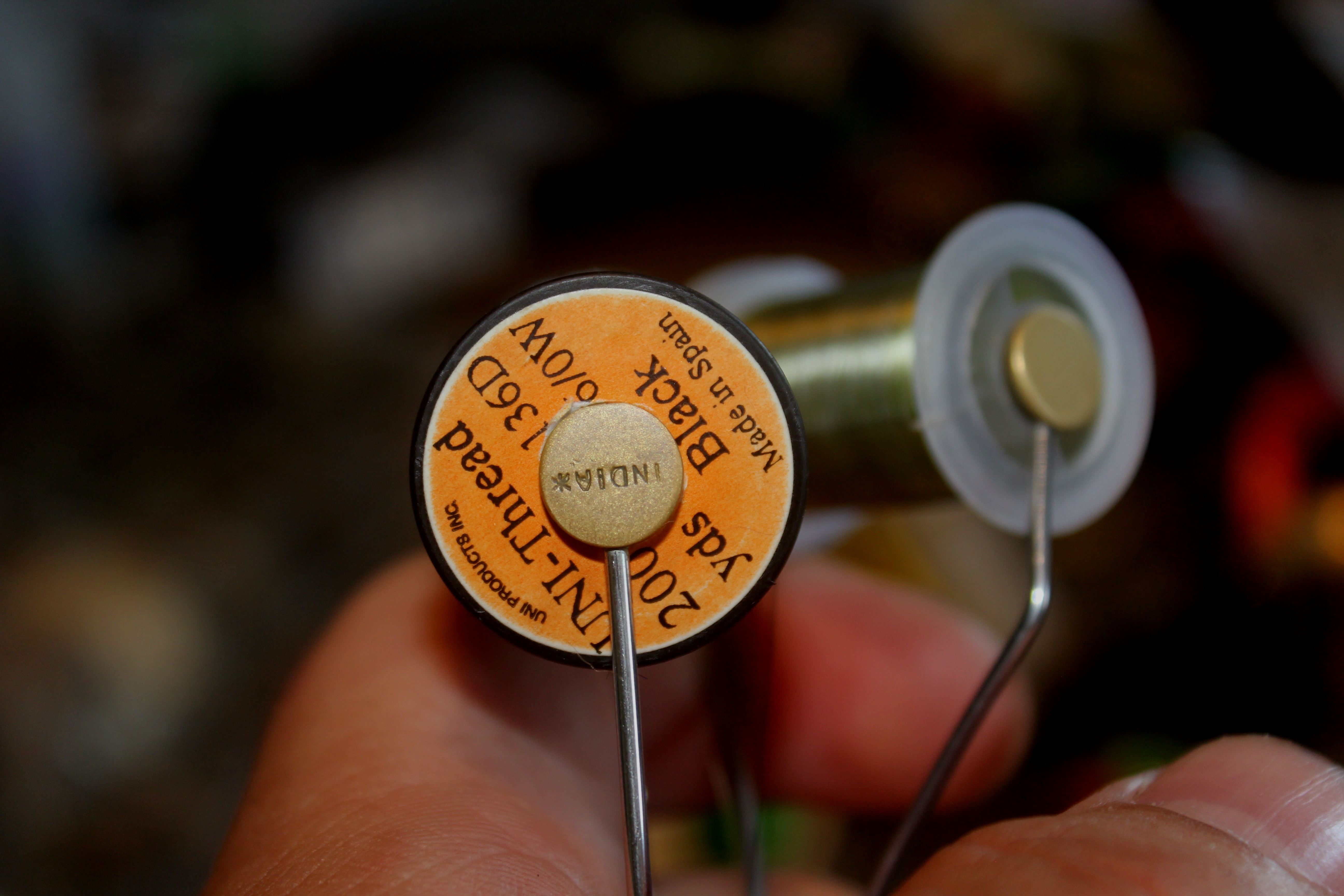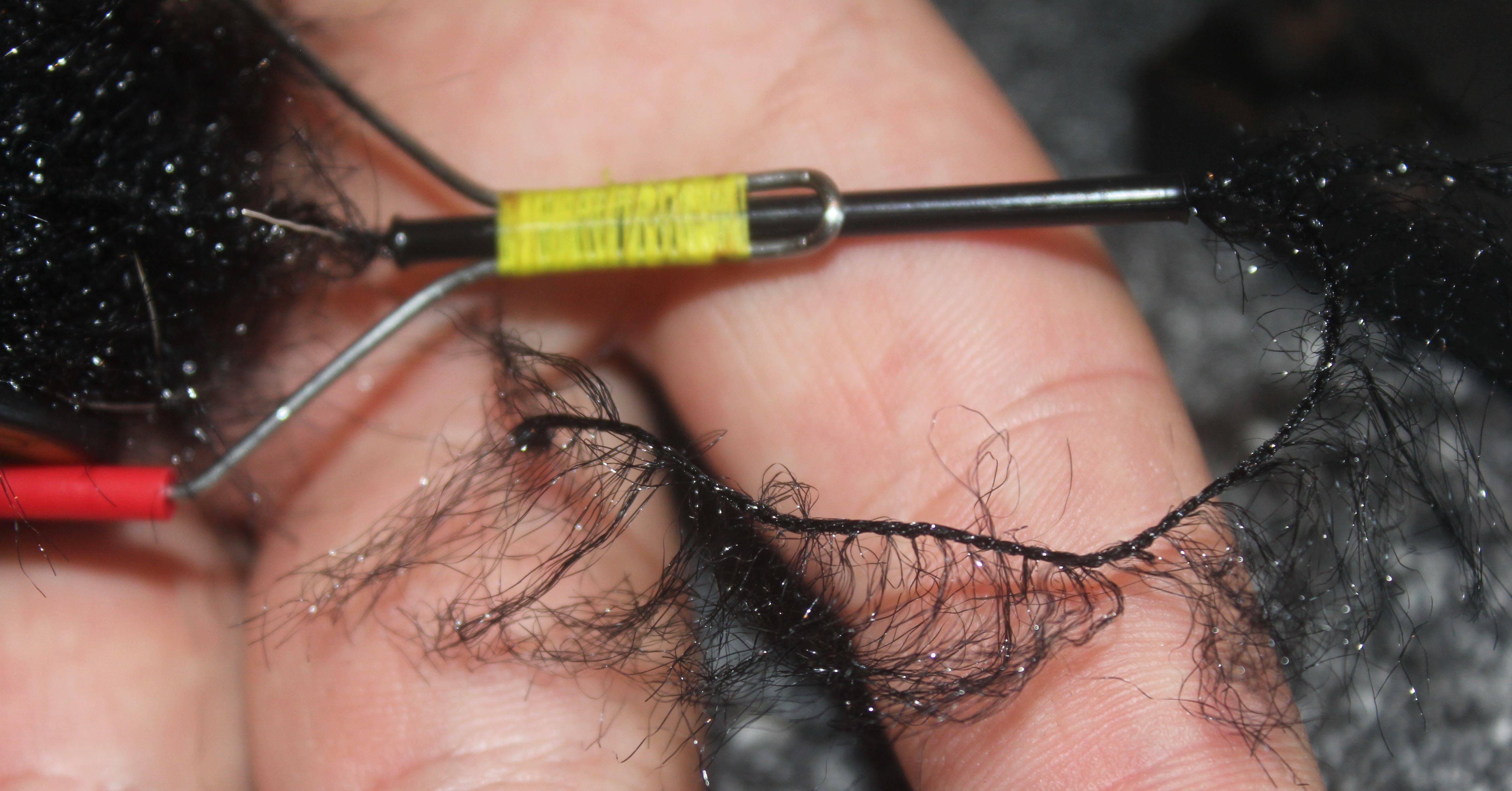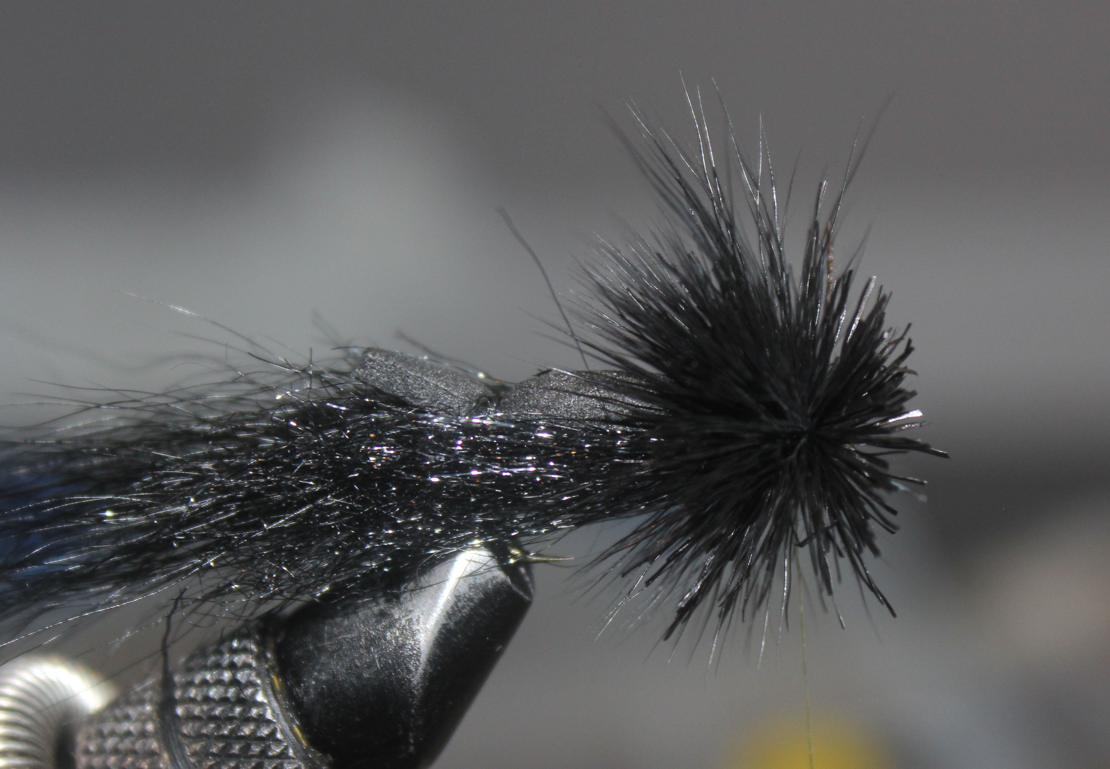 Svartedævven 1) – Jeg liker å bruke to ulike bindetråder. Foto: Lasse BøeSvartedævven 2) Jeg foretrekker en hale av bucktail , og er stivt i forhold til f.eks. marabou. Foto: Lasse BøeSvartedævven 3) – Ribbingmaterialet. Litt usikker på hvor denne er fra, men grov dubbing som børstes ut gjør samme nytten. Foto: Lasse BøeSvartedævven 4) Start med en sterk bindetråd. Jeg foretrekker Semperfli Nanosilk 18/0. Fest tråden og bind inn bucktailhalen. Foto: Lasse BøeSvartedævven 5) Bytt til en tykkere bindetråd, feks. UNI 6/0. Fest inn ribbingsmaterialet, og bind inn en tapert strimmel av foam. Begynn å dubb en tykk kropp med svart dubbing. Foto: Lasse BøeSvartedævven 6) – Dubb en tykk (og gjerne tapert) kropp. Foto: Lasse BøeSvartedævven 7) – Vikle ribbingmateriale i tette turn fremover mot krokøyet, og fest godt med bindetråden. Bruk en tannbørste til å børste fibrene ut til sidene. Foto: Lasse BøeSvartedævven 8) – Brett foamstrimmelen over ryggen på flua, og fest den med stramme turn. Foto: Lasse BøeSvartedævven 9) – Slik skal det se ut når ryggskjoldet er på plass. Foto: Lasse BøeSvartedævven 10) Foran avslutningen på foamen, fest inn hjortehår og spinn rundt krokskaftet. Foto: Lasse BøeSvartedævven 11) – En ny bunt med hjortehår bindes inn. Foto: Lasse BøeSvartedævven 12) – … og den tredje og siste bunten med hjortehår er på plass. Avslutt med whip finish. Foto: Lasse BøeSvartedævven 13) Jeg liker skikkelig rufsete hoder på Svartedævven, og kun grovklipper hjortehårene i en tapert form. Her er flua sett underfra. Foto: Lasse BøeFoto: Lasse Bøe