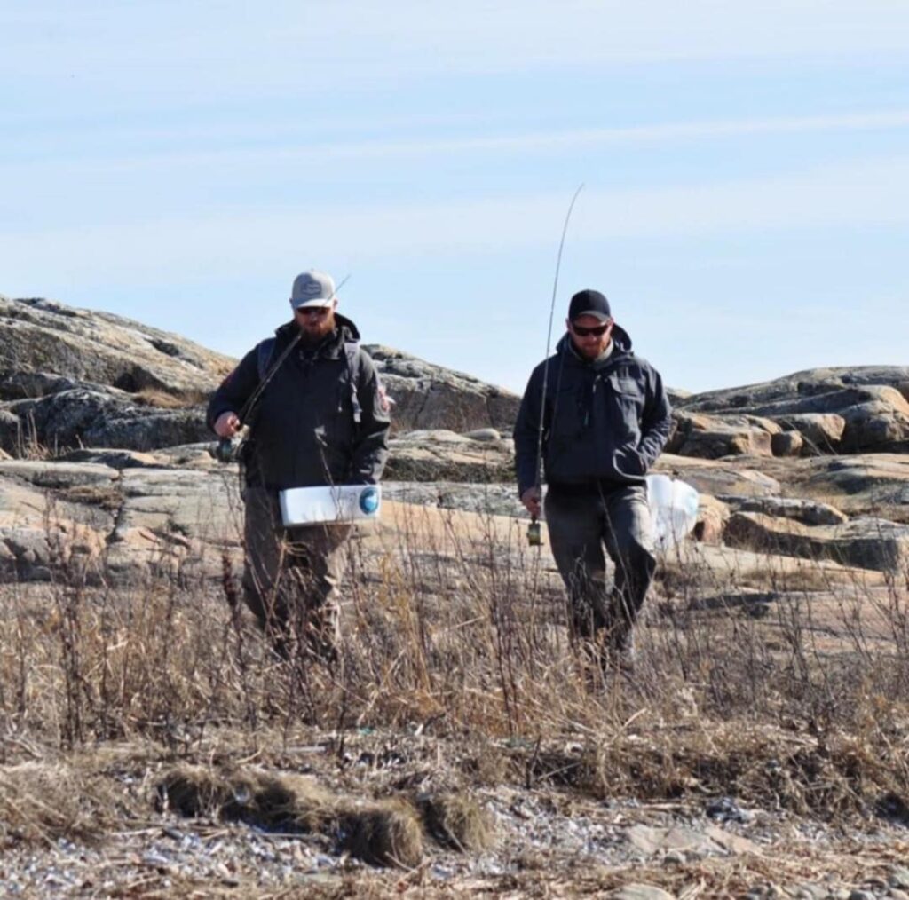 Initiativtakerne til oppropet på vei ned til fjorden med fluestengene – ikke som trussel mot fjorden, men som forvaltere. I generasjoner har sportsfiskere hatt et nært, ansvarlig forhold til naturen. Nå kjemper de for å bevare både tradisjonen og økosystemet. Foto: Privat