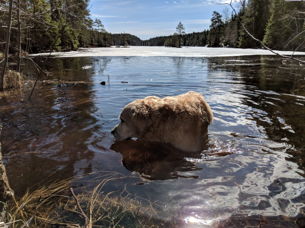 Vi satt og koste oss, drakk kaffe og spiste opp resten av fyrstekaka. Siden jeg har en i overkant aktiv jentunge på seks måneder hjemme får jeg litt dårlig samvittighet av å stikke av hver helg, så jeg ville gjerne hjemover til Sunniva og Oda.Rutinert som han er var Jan-Erik allerede ferdig pakket. Jeg tok meg god tid, og vi tuslet avgårde i tolvtiden. Hugo fikk seg et par dukkerter på vei hjem og det var generelt bare deilig å være ute i skogen. Jeg vil ikke offisielt påstå at tørrfluesesongen har startet, men det er ihvertfall ikke lenge til…