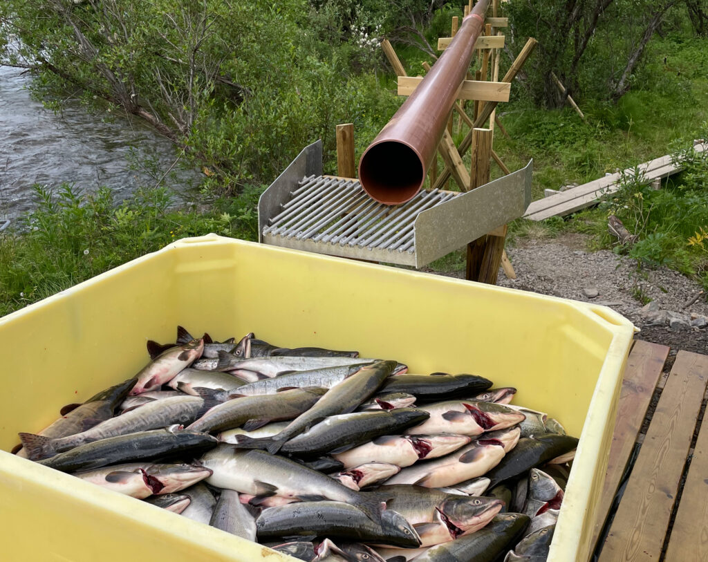 Kva gjer du viss du har fanga tre tonn pukkellaks og det er langt til næraste veg? Vestre Jakobselv Jeger- og Fiskeforening har funne løysinga. |Foto: Eirik Frøiland/MIljødirektoratet