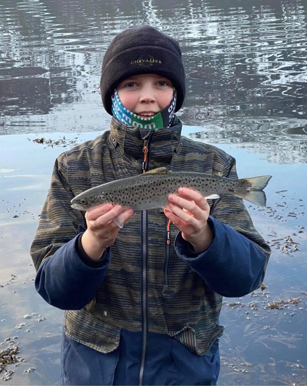 Dagen startet kl 07:00, da sjøen var på full fjære (altså lavvann), og det skulle ikke ta lang tid før den første fisken satt. Det var en liten sjøørret på ca. 500 gram. Det lovt kanskje godt, men fiskerne hadde ingen anelse om at dagen skulle bare bli bedre og bedre derfra.