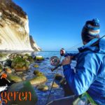 Nuvel. Det var bare å tusle litt videre og komme seg uti. Jeg må si meg usedvanlig fornøyd med å ha gått til anskaffelse av neoprenvadere til sjøørretfiske. Det holder lenge med bare en tynn ullstilongs og to par ullsokker i det iskalde vannet. Etter få kast mente Eirik at det var en fisk som lugga. Like etterpå kjente jeg det samme. Det er sånt som hjelper på iveren, men dessverre ble det med det. Etter litt matpakke, kaffe og en prat med et par forbipasserende fluefiskere som heller ikke hadde fått noe dro vi tilbake. Vi stoppa et sted mellom Sandefjord og Drammen. Eirik tok seg en cowboystrekk i bilen mens Kent og jeg vada uti for å stå og dunke reker og streamere i en etterhvert ganske sterk og kald vind. Etter en veldig god stund hadde Eirik våkna og satte igeng med fiskinga. Da hadde jeg fått nok og takket for en fin dag og satte kursen hjemover.