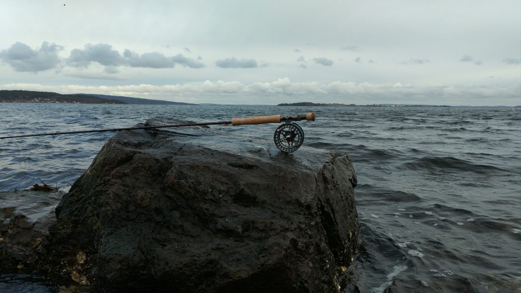 Det viste seg at termometeret var riktig. Etter kort tid dukket Eirik og Kent opp og vi kjørte nedover. Det var mye folk ute og fiska på godplassene, så det tok litt tid før vi kom til et egnet sted man kunne fiske uten å trekke kølapp. Etter et «nei her er det grunt» til et håpefullt spørmål om det var noe særlig å bruke synkeline så jeg kunne få testa den nye Airflo synkelina mi på #6 stanga, og jeg hadde tidligere meg på at Cortland Clear Camo lina oppførte seg som en telefonledning i kaldt, vær dro jeg frem Streamstix Competitionstixstanga i #7 med Guideline Coastal lina.