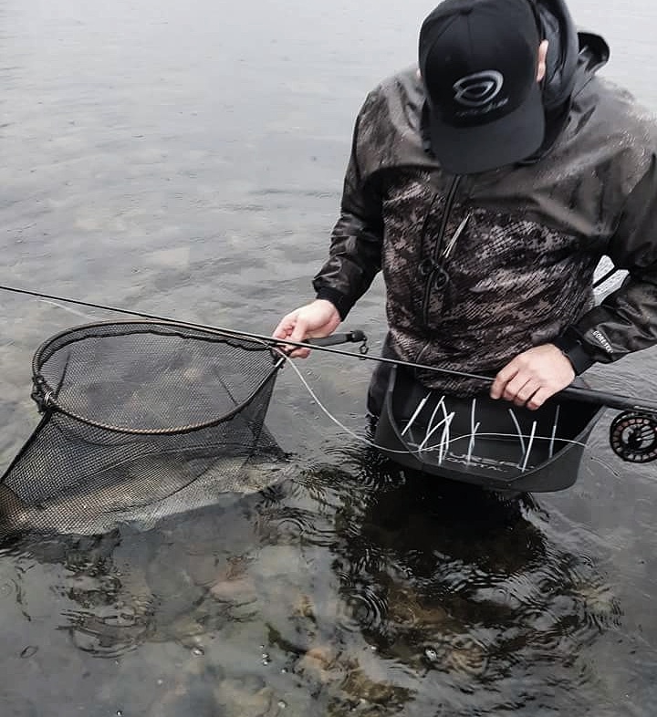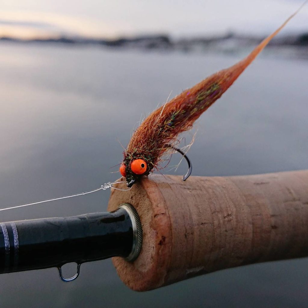 Om vinteren er jeg ikke så nøye på fluevalg, bruker gjerne duse oliven, grå, tan fargede spey reker. Samt noen kutling-varinter i duse farger, en krill imitasjon og et par fiskeimitasjoner. For meg er ikke det å fiske med sjokk rosa og oransje om vinteren viktig for å trigge treig fisk, men prøver det gjerne om annet ikke funker. Har mer troen på vanntemperatur og hastighet på flua. Imitasjonene jeg bruker må således pulsere, og gi ett inntrykk av mye liv selv ved små bevegelser. Og ikke minst er det viktig å stole på seg selv og hva man tror fungerer.