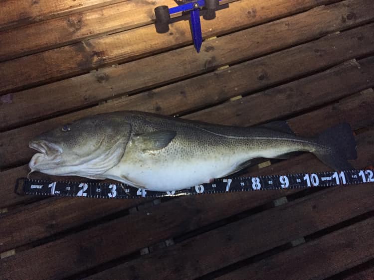 Da torsken var vel på land etter mye klabb og babb, var det tid for å veie den.