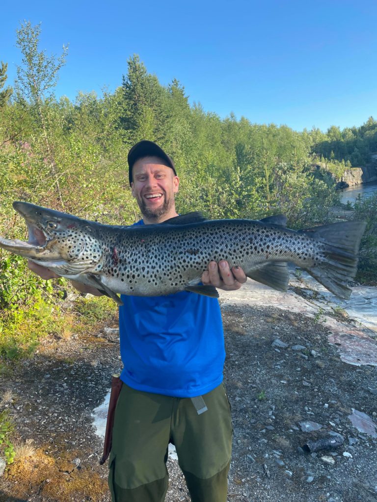 For fiske det gjør han 3 til 4 dager i uken, stort sett bare i Pasvikelva. De er to kompiser som fisker sammen, noe de har gjort i flere år.