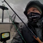 Da jeg kom fram sto Per og rigga stanga allerede. Det var en del åpent vann, men litt is her og der og masse fjoner fra dunkjevler. Vannet var ganske klart, men det var vel bare et spørsmål om tid før smeltevannet gjorde det om til kakaovann.