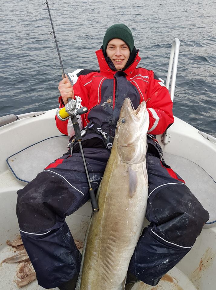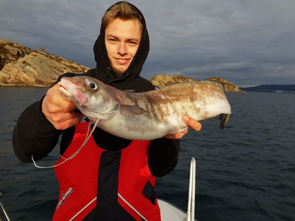Han forteller videre at heldigvis er Espen Knarvik en mester på det å holde båten i sånne forhold så snørene sto rett ned. Etter en liten stund kom det en litt annen napping i stangen min enn jeg tidligere har kjent, og dette var definitivt noe annet enn de «agntyvene» vi er vant til her. Fasiten var en skjellbrosme på 1940g og som målte 59cm i lengde Drømmefisken satte i gang et stort jubel hos sportsfiskeren og det at den til og med ble tatt målrettet på hjemmebane er ikke verst det hellet. Vi presset på litt lenger i håp om at Espen skulle få en han og, men sjøen ble for grov og måtte derfor gi oss, forteller Vågenes til Fiskeavisen.no